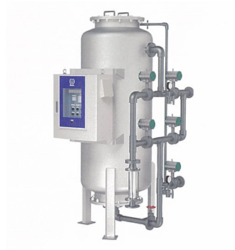 ボイラ給水としては、多くの現場では軟水装置はありますが、蒸発効率の著しく高い小型貫流ボイラでは RO膜装置をプラスしてスケール生成の要因を完全に除去します。